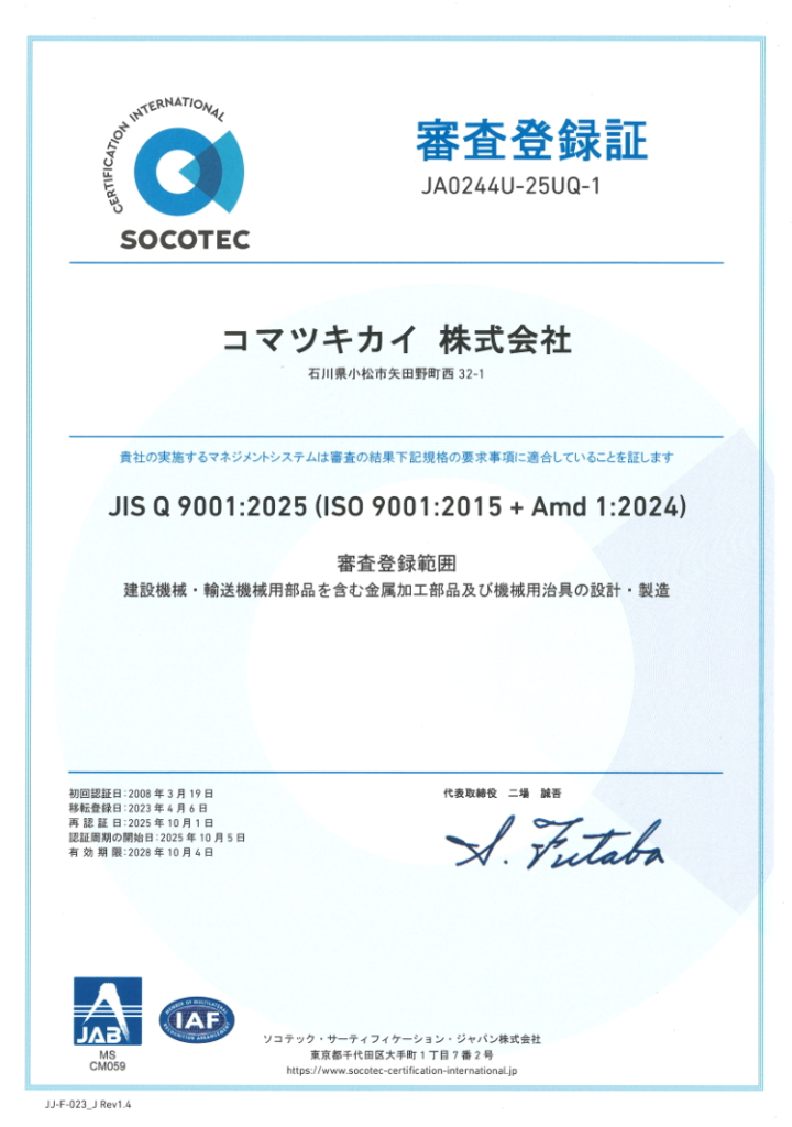小松機械㈱ より業務を継承し、コマツキカイ㈱ として新会社設立