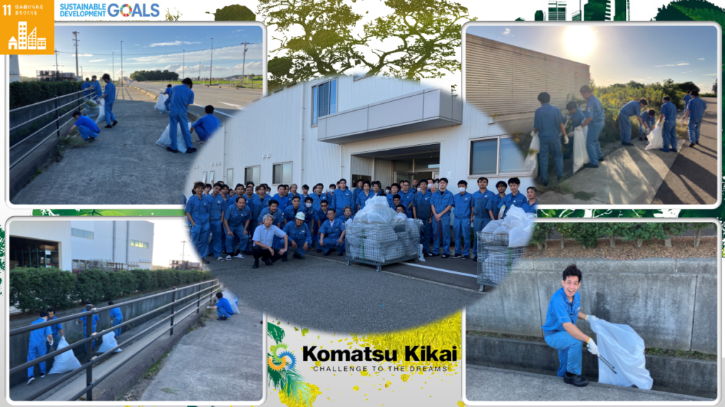 本社・小松南工場周辺の美化活動計画し、外国人実習生・エンジニアを含めた